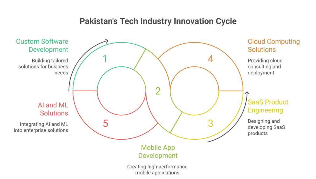 Custom software development remains the backbone of Pakistan’s tech industry. Leading companies specialize in building tailored digital solutions that address specific business challenges.